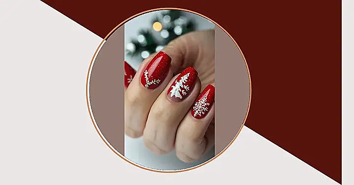 These nails are seriously festive! Imagine: it’s Christmas Eve, you’re snuggled up by the fire with hot cocoa, and BAM! You see these gorgeous red nails sparkling with tiny Christmas trees and snowflakes. They’re like a little Christmas party for your fingertips— way cooler than wearing a Santa hat (though Santa hats are also pretty great). You’ll be the envy of everyone at the family Christmas dinner; even Grandma will be impressed!