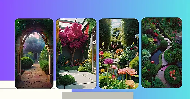 This garden isn’t just beautiful, it’s bursting with personality. With the lush green leaves, colorful flowers, and even a little pond, it’s like a mini-world all its own. Maybe there’s a talking frog living in the pond or a tiny unicorn hiding in the bushes. Who knows what secrets this garden holds? It’s waiting for you to explore and find out!