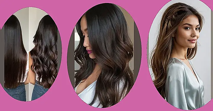 This hairstyle is like a dream! Imagine the feeling of running your fingers through hair as soft as silk. That’s the kind of luxurious feel this hairstyle gives off. It’s like a waterfall of glossy dark brown locks, with just a hint of caramel swirling through, making it look extra dreamy.