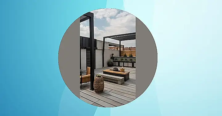 Imagine you’re hanging out with your friends on a rooftop patio, but instead of just a plain concrete slab, you’ve got a fancy wooden deck that curves around like a giant, comfy hammock. You can lounge on comfy chairs, soak up the sun, and gaze out at the city like you’re in a movie. It’s like your own personal slice of paradise, way up in the air!