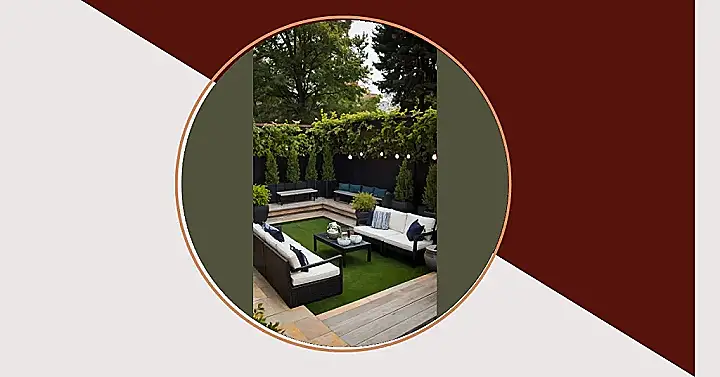 But what makes this rooftop patio design so cool? Well, besides the obvious coolness of having a patio on a rooftop, the design is simple yet stylish. The black walls give it a modern vibe, while the wood decking and comfy furniture make it feel warm and inviting. Plus, the fake grass is so realistic you might just forget you’re not actually in a park! This patio is the perfect mix of urban cool and cozy comfort.
