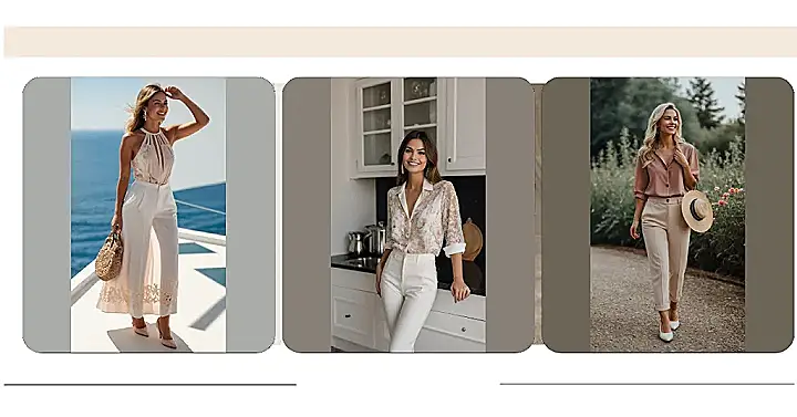 This super chic outfit looks ready for a stylish brunch or a fancy art gallery opening, but definitely gives us a chuckle when we think about it as a ‘picnic outfit’. Those perfectly pressed wide-leg pants and crisp white shirt? They practically scream ‘danger zone’ for any spilled ketchup or rogue grass stains. And let’s not even start on navigating uneven park ground in those sleek white heels. One wrong step, and you might accidentally aerate the lawn with your fashion-forward footwear! This is clearly a look for enjoying the *idea* of a picnic, perhaps from a very clean park bench or a pristine patio.