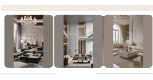 Imagine walking into this living room and instantly feeling like royalty! It’s got everything a fancy palace needs – sparkly chandeliers that make you feel like you’re dancing at a ball, comfy white couches perfect for lounging, and even a big, fancy mirror that makes the room feel even bigger (and maybe a little bit magical!). The whole space just screams “relax and enjoy!”
