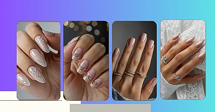 Thinking about ‘blonde nails’ might sound a bit funny, like do they have highlights or something? Nah! It’s more like the vibe you get from the coolest blonde looks – light, bright, and totally eye-catching without even trying too hard. These nails in the picture totally nail that vibe. See how the color is soft and kind of shimmery? Then they added all that sparkly silver stuff and cool swirling designs. It’s like your fingertips got a glow-up worthy of the most fabulous blonde moment.