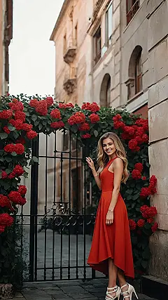 This lady is rocking a seriously cute outfit, and you know what? It’s the kind of look that makes you feel like you could walk down any city street and own the place. She’s got a red dress that’s flowy and flattering, with a bit of a daring twist on the hemline. She’s even got those killer white heels to match, which totally add to her confidence. It’s like a scene right out of a movie where the main character steps into the spotlight and you just know she’s about to do something awesome.