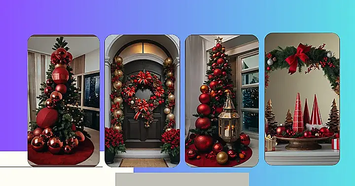 Think of it like this: the picture is a super-sized, luxurious version of what you can create. You can achieve that same festive feeling with smart choices! Instead of giant balls, use smaller, more budget-friendly ones. Instead of a massive wreath, find a cute little one that will snuggle nicely on your door. The key is to pick a color scheme (like the beautiful red and gold here!) and stick to it. With a little creativity, your small apartment can be bursting with Christmas cheer, even if it’s on a more manageable scale!