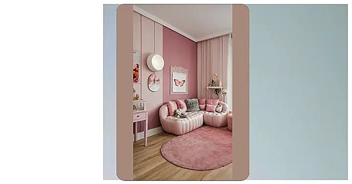 Imagine stumbling into this “ladies room” after a long day; it’s like walking into a giant cloud made of cotton candy! The plush pink rug practically begs you to kick off your shoes and sink in, while that marshmallow-y couch looks like the perfect spot to gossip with your besties. Who even needs a spa when you can just bask in this sugary-sweet sanctuary?