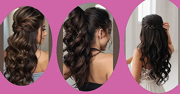This hairstyle is like a magic trick for your hair! It’s half-up, half-down, and it’s all about showing off those gorgeous curls. The twist at the top makes it super cute and fancy, and you can make it your own by adding your favorite hair accessories. Think sparkly clips, headbands, or even a flower!