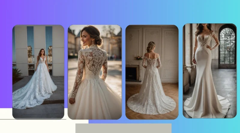 That fabulous shaping around her waist? That’s where the magic of a Basque waist often comes in! It creates this super flattering line, sometimes dipping a little lower to give you this really cool, elongated look that makes you feel like royalty. Plus, with all that delicate lace covering her back and those long, intricate sleeves, it’s proof that sometimes, covering up can be even more stunning than showing a lot of skin. You just know she’s feeling like the star of the show, even if she has to strategize a bit to make it to the snack table or pull off those epic dance moves later. But hey, for a dress this breathtaking, it’s totally worth it to be the main character for a day!
