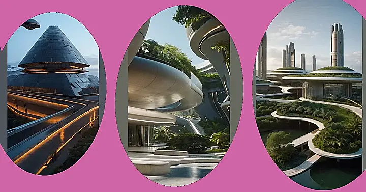 The best part is, these buildings aren’t just about looks. They’re also about being eco-friendly. You see how they’re close to the water? That’s because they’re designed to take advantage of natural energy, like the sun and the wind. It’s like a giant building-sized science project! So, if you ever get to visit a futuristic building, remember it’s not just cool to look at, it’s also super smart!