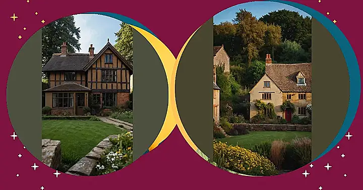 This charming English village house looks like it stepped straight out of a fairytale! Imagine cozying up in front of a roaring fireplace on a chilly evening, with the gentle sound of rain tapping on the windowpanes. The house has a classic stone exterior with a charming roof and windows that seem to whisper secrets from the past.