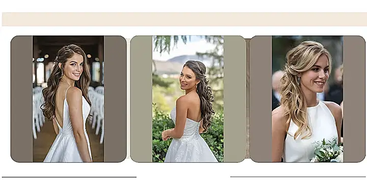 Wow, check out this bride! Her dress is gorgeous, all lacy and dreamy, kind of like a fairytale. But let’s be real, the real star of the show is her hair. It’s not just any old hairstyle, oh no. This is serious “bridal layered hair” magic— think cascading waterfalls of gorgeousness, perfectly styled and ready to say “I do!” It’s the kind of hairstyle that makes you want to try braiding your own hair, even though it probably won’t turn out quite this amazing.