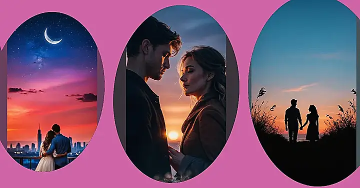 This picture practically screams “relationship goals” louder than a pop concert! You’ve got this super cute couple, all wrapped up in a hug, gazing out at a city skyline that’s putting on an epic light show. The sky itself is a masterpiece, fading from a deep, starry blue with a shy crescent moon into a fiery pink and orange sunset. It’s like nature decided to splash all its best colors on the canvas just for these two, making it the perfect ‘couple wallpaper’ if you want your phone to emit peak romantic comedy vibes. They probably just finished arguing about whose turn it is to do the dishes, but you’d never know from this picture!