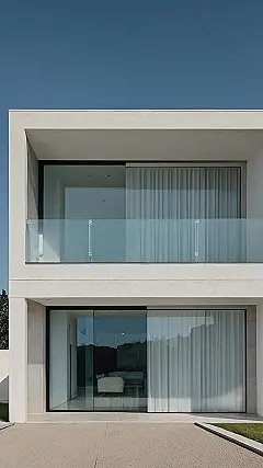 This house is like a whisper – elegant and stylish, but not shouting about it. It’s all about clean lines and simple shapes, like a modern art piece. The big windows let in tons of light, making the inside feel open and airy, like you’re living in a peaceful, minimalist oasis. You wouldn’t find a bunch of clutter here – just the essentials, like a comfy couch and maybe a cool piece of artwork. Everything has its place, and it all just works together perfectly.