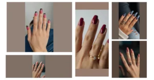 The burgundy color is just the right amount of bold, like a statement piece you can’t take your eyes off of. It’s like the nails are saying, “Hey, I’m here, I’m fierce, and I’m ready for anything!” You wouldn’t even need to do anything fancy with those nails. Just a little swipe of red, a quick dry, and you’re good to go! And that ring? Don’t even get me started. It just adds that extra touch of glam, like the cherry on top of a perfect sundae. It’s all about balance, and these nails have it in spades.
