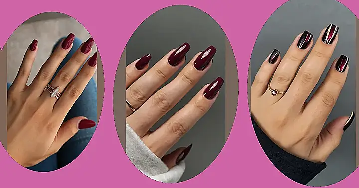 This picture shows some seriously stylish nails, painted in a deep, rich burgundy shade. It’s like the color of a fancy wine you’d sip at a fancy dinner party, but way less messy. You could totally pull off this look, even if you’re just hanging out with your friends at the mall or having a pizza night at home.