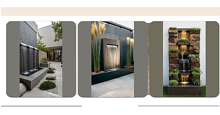 Forget boring old walls that just stand there, looking all… wall-like. This outdoor wall fountain is like giving your backyard a spa day, but for its actual structure! Instead of just holding up the roof, your wall gets to be a superstar, showing off a shimmering curtain of water. It’s so sleek, even the fancy pampas grass next to it looks like it’s leaning in for a closer listen, probably thinking, “Wow, my wall’s got moves!” Plus, it’s way cooler than just gluing a picture of a waterfall to your house.