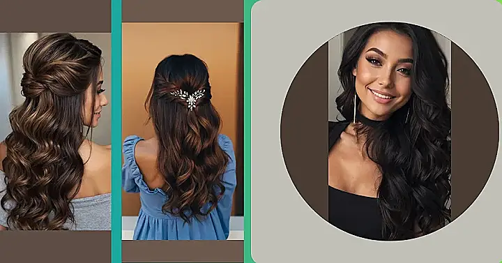 This hairstyle is like the perfect mix of “I’m ready for anything” and “I’m still chillin’.” Imagine you’re getting ready for a fancy dinner, but you also want to look like you just rolled out of bed (in a good way, of course!). This half-up, half-down style is perfect for that! It’s got that effortless, wavy look that’s easy to manage, but it also has a little something extra with the twist at the top, so you don’t look like you just woke up.