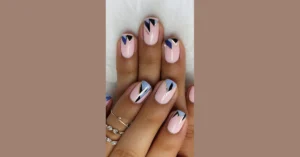These nails are totally festive, even if they’re not covered in glitter and reindeer! The pretty pink base is like a winter sunset, and those abstract designs are like tiny, colorful snowflakes. It’s simple, it’s chic, and it’s way more interesting than plain old red. Plus, it’s the perfect excuse to show off those sparkly rings —because who needs a Christmas tree when you’ve got this amazing manicure?