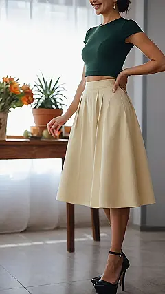 This girl knows how to rock a skirt outfit! She’s got the sleek black top, the flowy emerald green skirt, and the perfect handbag to complete the look. It’s like she stepped out of a fashion magazine. That skirt is just begging for a spin, don’t you think? Imagine walking down the hallway in this outfit and feeling like a total rockstar.