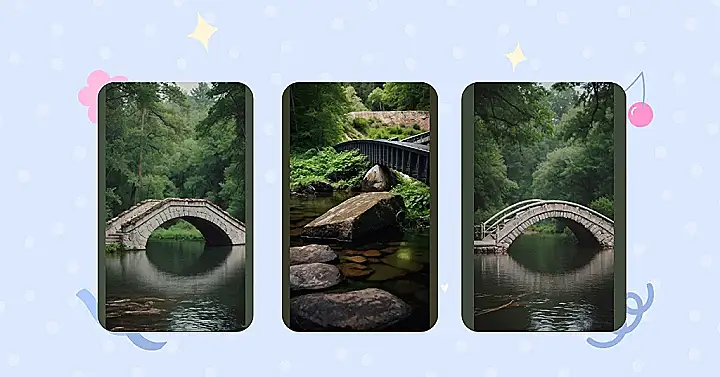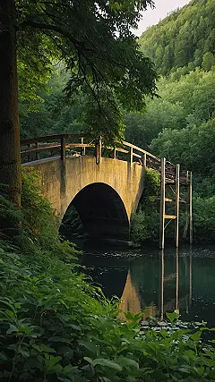 This bridge looks like it could lead you straight into a dream! It’s all mysterious and covered in lush greenery, with a cool reflection in the water. You could almost imagine a magical creature popping out from behind the bridge, like a friendly dragon or a talking frog!