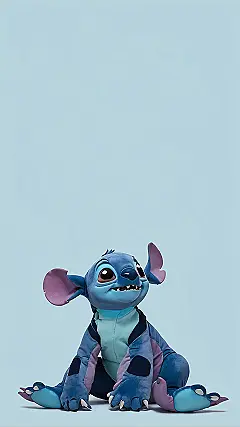 Look at this little guy! Our favorite blue alien, Stitch, is chilling out on a calming blue background, ready to make your screen 100 times cooler. With those giant, innocent eyes and ears that look like they’re ready to pick up signals from another galaxy, he’s practically begging to be your new phone or computer wallpaper. He might look super calm and sweet here, but don’t let that innocent face fool you; he’s probably just planning his next big adventure (or maybe a massive snack raid) right after he finishes being adorably cute on your device.