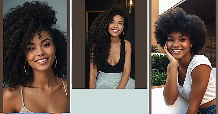 This picture shows a woman rocking her natural curls with a big, bright smile. Her hair is the star of the show, bouncing with life and personality. It’s like a fluffy cloud of happiness sitting on her head! Afro hair is amazing and versatile, it can be styled in a million different ways – from braids and twists to afros and locs. You can even add some cute accessories like beads or clips to personalize your look.