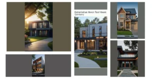 In another part of the village, a unique dwelling catches your eye with its modern take on a traditional design. Sharp geometric lines playfully intersect with rounded arches, creating a harmonious balance between old-world charm and contemporary flair. Large windows flood the interior with natural light, illuminating sleek minimalist furniture and vibrant abstract art pieces that add a touch of creativity to the space. The open-concept layout seamlessly connects the living area to the kitchen, where a sleek marble countertop contrasts beautifully with the weathered wooden floors. This dwelling is a testament to the beauty of blending the past with the present, offering a fresh perspective on the concept of home.