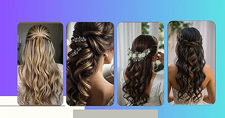 Curating a stunning bridal look involves blending elegance with a touch of modern flair. Delving into the world of chic half up half down wedding hairstyles unveils a realm of versatility and sophistication. Picture the bride exuding confidence and beauty as her hair cascades seamlessly in a perfect balance of up and down – a harmonious interplay of classic and contemporary styles. This style effortlessly combines the grace of a traditional updo with the relaxed charm of loose, flowing locks, making it a standout choice for brides seeking a refined yet effortlessly chic look for their special day.