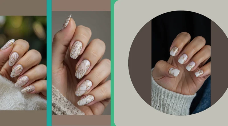 And let’s talk about that gold – it’s not just a splash; it’s a whole art show! We’ve got nails looking like they’re wearing tiny, fancy golden doilies, and others with sleek gold lines crisscrossing like secret maps to hidden treasure. With nails this fabulous, you might accidentally start signing autographs with your pinky finger or dramatically pointing at your homework, just because you can. Get ready for compliments, because these ‘milky nails with extra sparkle’ are definitely turning heads and probably making your friends a little jealous (in the best way, of course!).