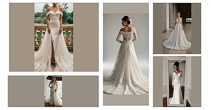 And don’t think for one second that you can’t go non-traditional! Unique non-conventional designs with modern twists are everywhere, and they’ll make your big day even more special. If plain feels a bit… well, plain, consider a soft and simple off-the-shoulder style for a touch of romance that screams elegance without causing a scene.