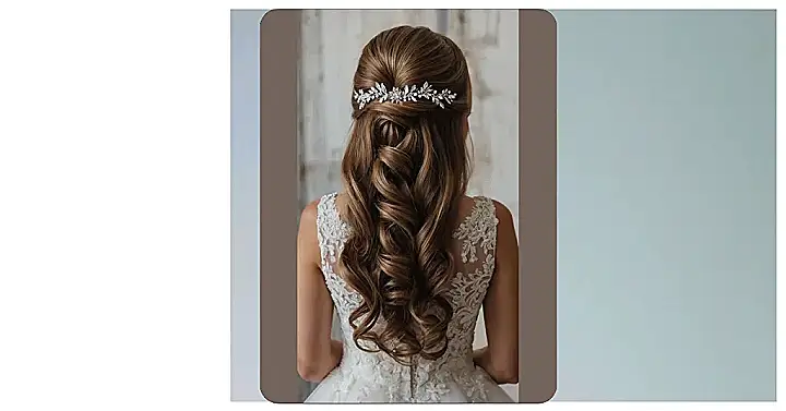 Think of your hair like the ultimate accessory for your big day. It has to survive dancing, photos, and maybe even a rogue hug from your crazy Uncle Bob. This style looks amazing and will last through all the wedding day chaos. With those pretty curls and that blingin’ headpiece, you’ll be ready to celebrate love, even if it means busting a move on the dance floor!