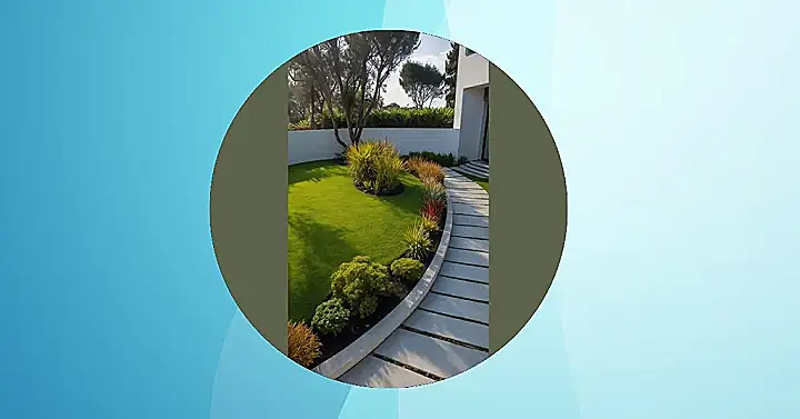 Check out this front yard that decided to go for an A+ in ‘less is more’ design! The grass is so perfectly green, it practically dares you to scuff it, and those stepping stones are like a super chic, easy-mode obstacle course leading to the cool modern shed at the back. It’s all about smooth lines and a ‘no clutter, no problem’ vibe, proving you don’t need a thousand things to make a place look awesome. Forget those gardens that look like a plant explosion; this one’s got its act together, making even a casual stroll feel like a high-fashion runway walk right to your front door.
