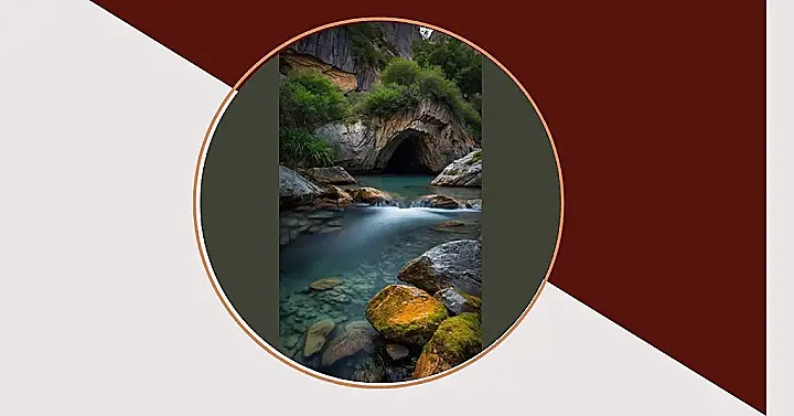 And check out that cave entrance! It looks like the perfect secret hideaway, probably stocked with snacks and Wi-Fi, right? Plus, the water isn’t just sitting still; it’s doing a cool, blurry dance over those rocks, making tiny waterfalls that probably sound like nature’s best ASMR. And those mossy rocks aren’t just rocks; they’re like fluffy, vibrant cushions waiting for a selfie or maybe for you to practice your rock-balancing skills. Who needs a theme park when you have natural wonders like this, practically begging you to ditch your screen and dive into an adventure?