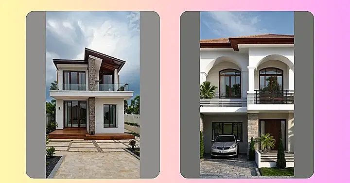 Planning your dream house can be a blast! Check out the photo – it’s got that clean, modern vibe going on with cool arches and a built-in parking spot for your future sweet ride. Imagine kicking back on that little balcony with a juice box, watching the world go by, or even better, throwing a party in the spacious living room you designed!