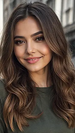 This awesome picture perfectly shows off how a killer layered cut can totally transform your hair. Notice how her brown waves aren’t just lying flat; they’ve got this amazing natural bounce and movement? That’s the secret sauce of layers, giving her hair so much life and making it look super full without being heavy. It’s like her hair is having its own little party and inviting everyone to admire its fantastic volume and how it perfectly complements her bright, happy smile.