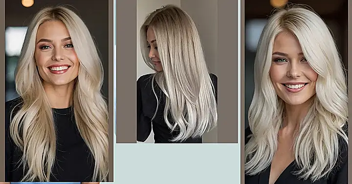 This picture is like a sunbeam captured in a photograph! The model’s hair is seriously amazing; it’s the kind of platinum blonde that makes you want to run your fingers through it (don’t actually do that unless you know her, though!). It’s so long and shiny, it almost looks unreal, like something out of a fairytale. Seriously, it’s the ultimate hair goal – the kind of blonde that could light up a room, even on a cloudy day.