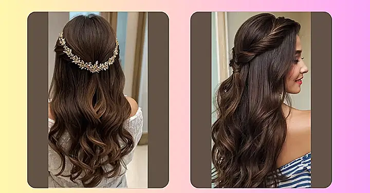Wow, check out this gorgeous hairstyle! It’s like something straight out of a fairytale, perfect for any party – whether it’s a birthday bash, a school dance, or even just a fun night out with friends. Those loose waves are seriously dreamy, and that sparkly hairpiece? It’s the ultimate party accessory! You’d definitely be turning heads with this look – it’s glamorous but still totally relatable.