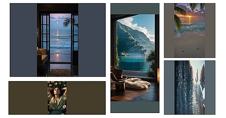 Now, while we can’t actually transport you there (yet!), this image makes the perfect ‘calm wallpaper’ to trick your brain into relaxation mode. Just imagine scrolling through your phone and seeing this instead of another notification about that group project. It’s like a mini-vacation every time you unlock your device! Plus, that fluffy rug on the floor looks so inviting, you might even consider doing your next essay right there, maybe with a virtual mug of hot chocolate. If your current screen background is giving you more anxiety than actual calm, it’s definitely time for an upgrade to this serene paradise.