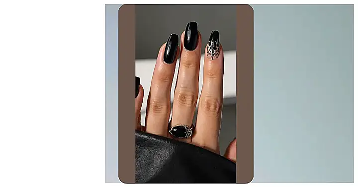 These black nail designs are so sleek, they’re practically ninja nails! Imagine trying to sneak into a movie without paying – those nails would be perfect for distraction and maybe even a little light pickpocketing (just kidding…mostly). And let’s be real, that ring? Totally complements the whole super-spy-meets-high-fashion aesthetic. Now, if you’ll excuse us, we’re off to find the perfect shade of black nail polish!