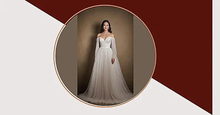 Get ready to bookmark this beauty because it’s giving major “bridal dress trends 2026” energy! Just look at that gorgeous lace – it’s like someone spun pure magic into those sleeves, making them perfectly delicate and oh-so-chic. This dress pretty much screams, “I’m elegant, but I also know how to have a good time without tripping over my own feet… most of the time!” The off-the-shoulder vibe adds that modern touch, proving that you can absolutely look like a princess without needing a stuffy, giant gown. It’s all about looking effortlessly stunning while everyone wonders if you secretly hired a stylist from the future.