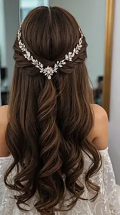 This picture is giving us major bridal hairstyle inspiration! That gorgeous, cascading hair is amazing, and the delicate hairpiece adds just the right amount of sparkle without being over-the-top. Imagine how many amazing compliments you’d get with a hairstyle like this – maybe you could even convince your friends to try something similar for prom! Seriously, this look is a total win, and it proves you don’t need anything too complicated to look like a queen.
