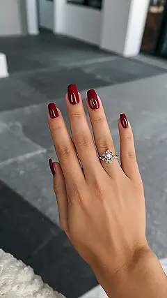 Seriously though, these nails are absolute goals! That stunning burgundy color makes a statement without being too over-the-top. Plus, it looks amazing against the winter scenery – imagine strolling through a snow-covered park with these beauties. And that ring? It’s the cherry on top of a perfectly polished winter look. You’ll be ready to conquer any snow day, or any holiday party, with nails this chic!