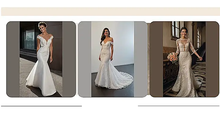 This dress is seriously stunning! It’s like a mermaid’s elegant tail met a princess’s delicate lace top. Imagine yourself gliding down the aisle, feeling like a total queen in this sheath silhouette wedding dress. The picture shows how the dress hugs your curves beautifully, giving you that amazing figure-flattering look. The lace bodice is the perfect touch of romance – it’s pretty enough to make you feel like you’re in a fairytale!