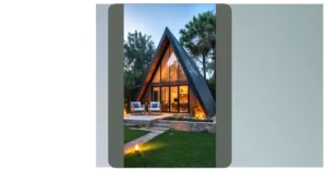 The A-frame design is super unique and stylish, and the way the light shines through those giant windows at night? Pure magic! Plus, the wooden deck and fire pit are the ultimate outdoor hangout spots. It’s basically a built-in party waiting to happen, especially with the comfy-looking patio furniture already set up. This house proves that you can have both awesome modern design *and* that classic, warm woodsy feeling, all in one incredible package!