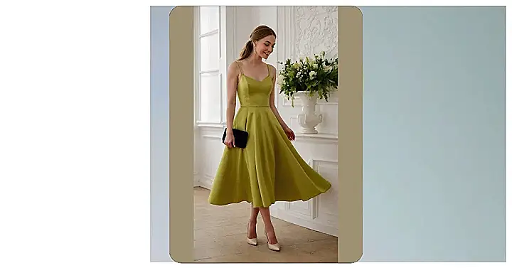What makes this look extra brilliant is how easily you can make it totally your own with just a few touches. Notice the sparkly earrings on our friend in the photo? They add just enough bling without shouting. And those shiny, muted gold heels? They’re perfect for adding a pop of glam while still being comfy enough to stand through the ceremony and maybe even bust a move or two on the dance floor. This midi-length dress hits that sweet spot – classy enough for a fancy wedding but still breezy enough that you won’t feel stiff, leaving you free to enjoy all the fun (and the free snacks!).