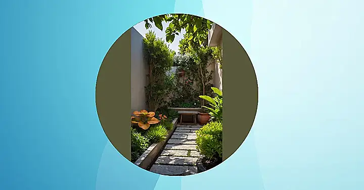 So, imagine your backyard but with a serious upgrade – like it suddenly got a passport and decided to visit Italy for style tips. This spot in the picture is basically that upgrade! Look at that cool wooden lattice doing its thing, letting the plants show off their climbing skills like tiny green ninjas. And that stepping stone path? It’s practically rolling out the red carpet (or maybe the grey and pebble carpet?) for you to stroll through looking extra fabulous, maybe even practicing your suave Italian accent as you go. It’s definitely not your average patch of dirt.