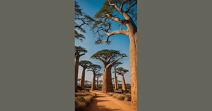 Walking down that dusty path feels like you’re starring in your own adventure movie, with these majestic trees as your co-stars and the big blue sky as the backdrop. The whole scene is just dripping with postcard vibes, making it the perfect place to capture those stunning shots. Finding awesome views like this and clicking away is what makes beautiful Africa photography so addictive – every turn is another chance for a mind-blowing picture!