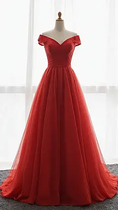 Forget the old ‘something borrowed, something blue,’ this dress is clearly ‘something red, something new, and totally rocking!’ Just look at this gorgeous number – it’s practically daring someone *not* to stare. With its elegant off-the-shoulder cut and layers of dreamy red fabric, you wouldn’t just walk down the aisle; you’d glide, possibly with a superhero cape billowing behind you (invisible, of course!). It’s the perfect choice for anyone who wants to make their big day pop, without accidentally blending into the tablecloths.