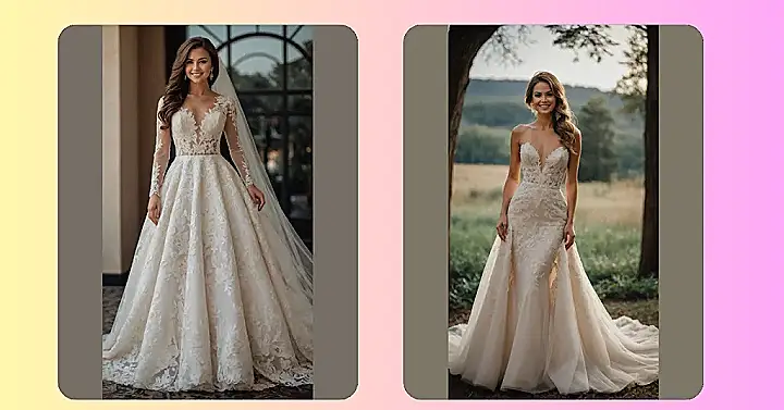 Wearing a mermaid wedding dress is basically like saying, “Yep, I’m a land mermaid now, deal with it.” This style is super glamorous and shows off your shape before giving you that epic train that trails behind you like a royal tail. You’ll probably feel like you should be singing to dolphins or maybe just awkwardly trying to sit down without tripping, but who cares? You’ll be shimmering and stunning, ready to make waves on your special day!